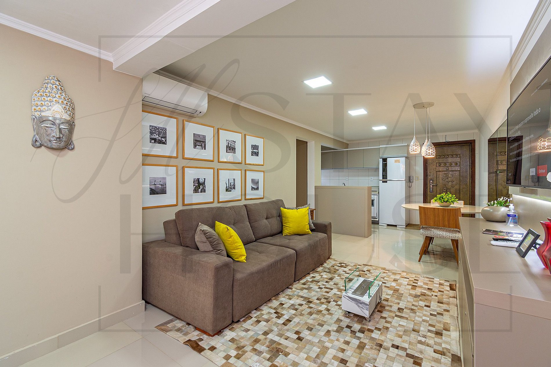 O Apartamento Petit Jolie conta com uma sala ampla e muito bem decorada, um sofá cama super confortável que acomoda até 2 pessoas.