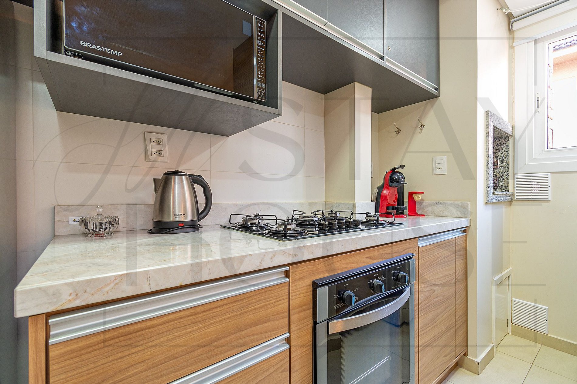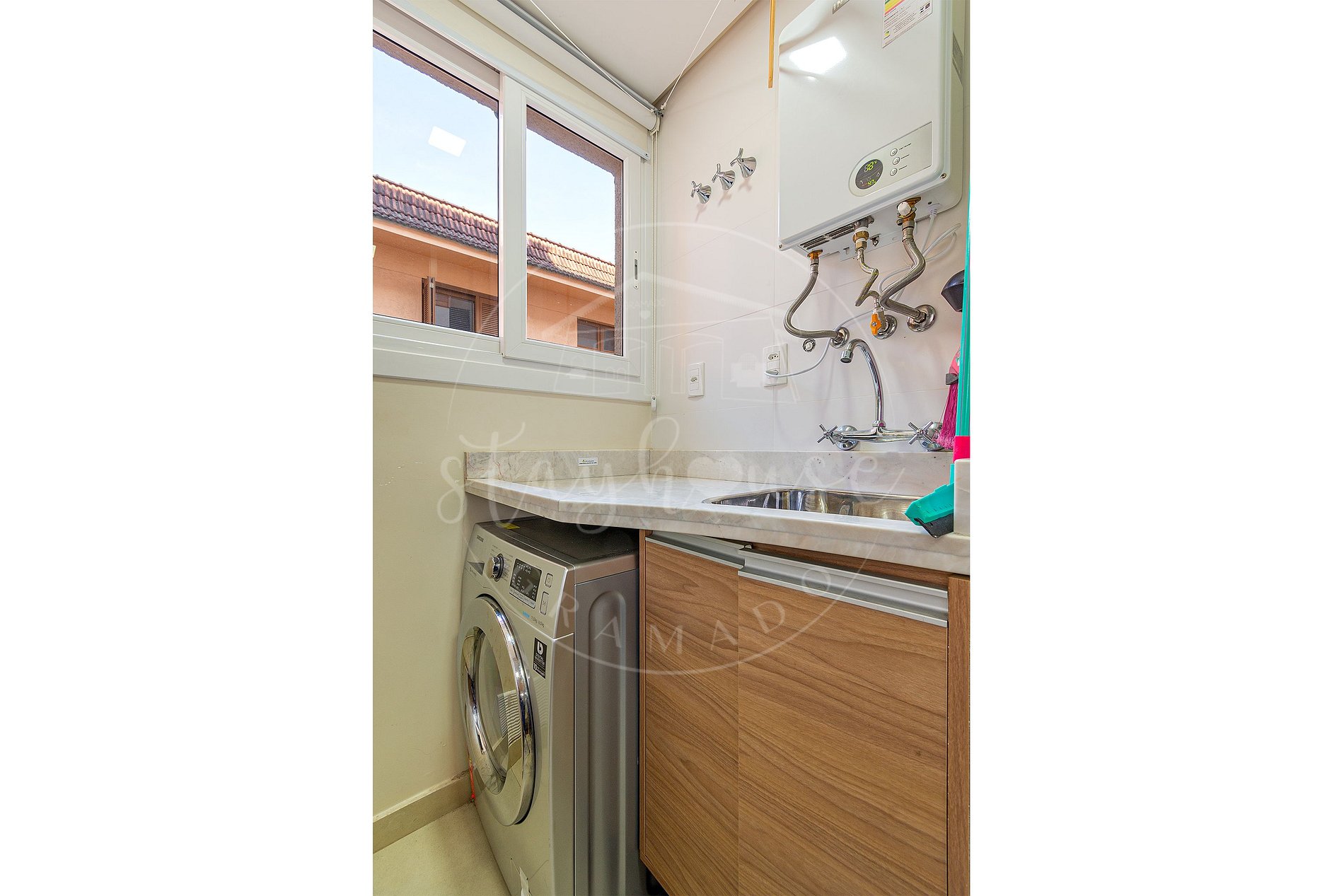 Cozinha completa e equipada, tanque e lava e seca.