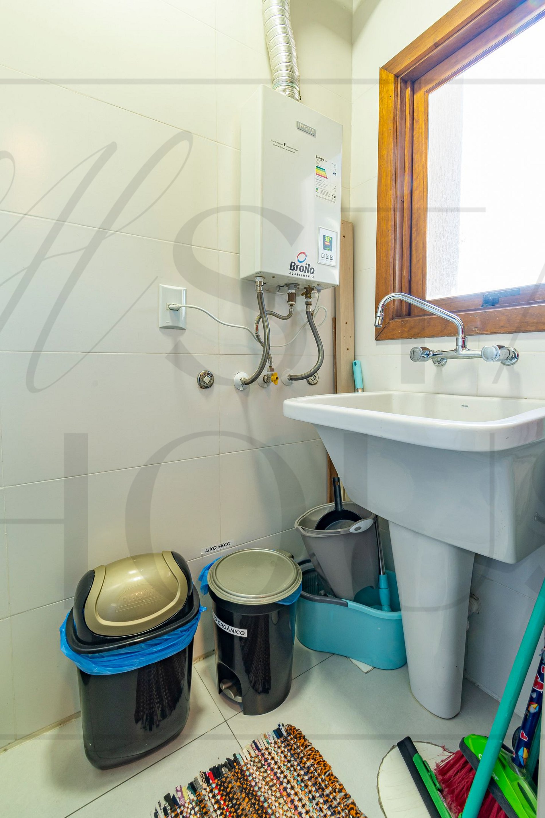 E separadamente uma pequena área de serviço com tanque, secadora de roupas e máquina de lavar.