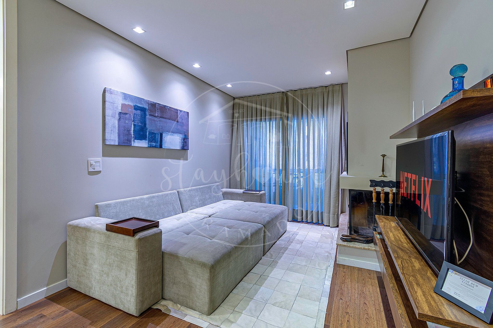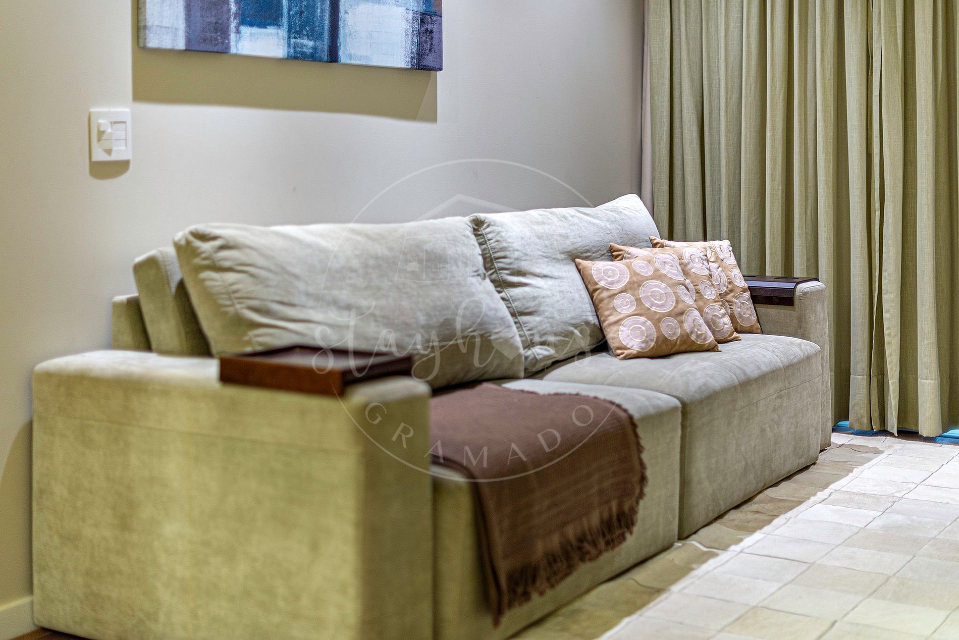O apartamento de 1 dormitório completo, localização privilegiada, acomodando até 4 pessoas. Com WI FI, vaga de garagem, churrasqueira, lareira, super completo.