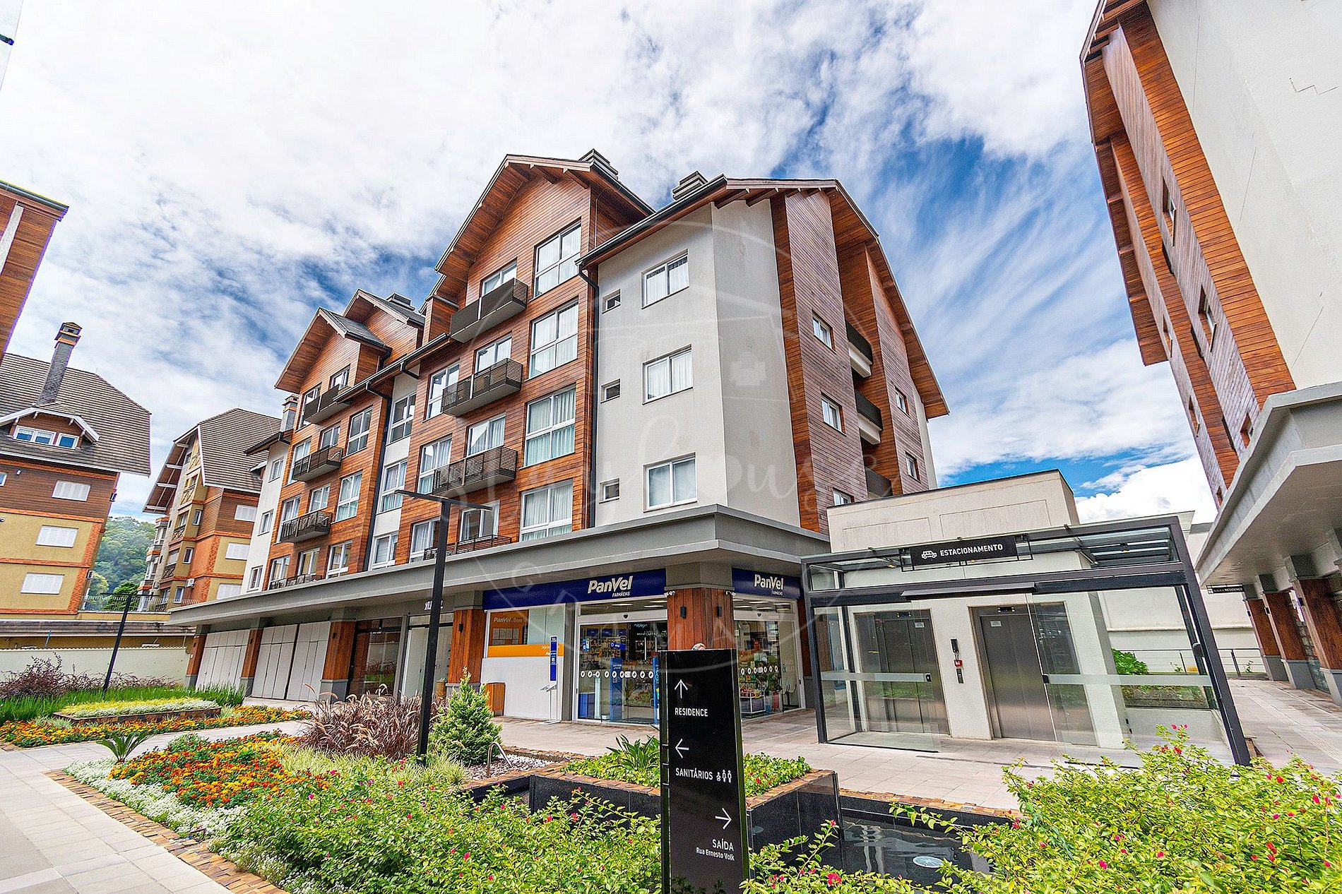 O residencial do Studio fica no Vita Boulevard em Gramado, o estacionamento é no subsolo. O acesso ao imóvel é pela rua ou pela garagem da garagem ao andar de entrada do imóvel tem elevador ou escada rolante.