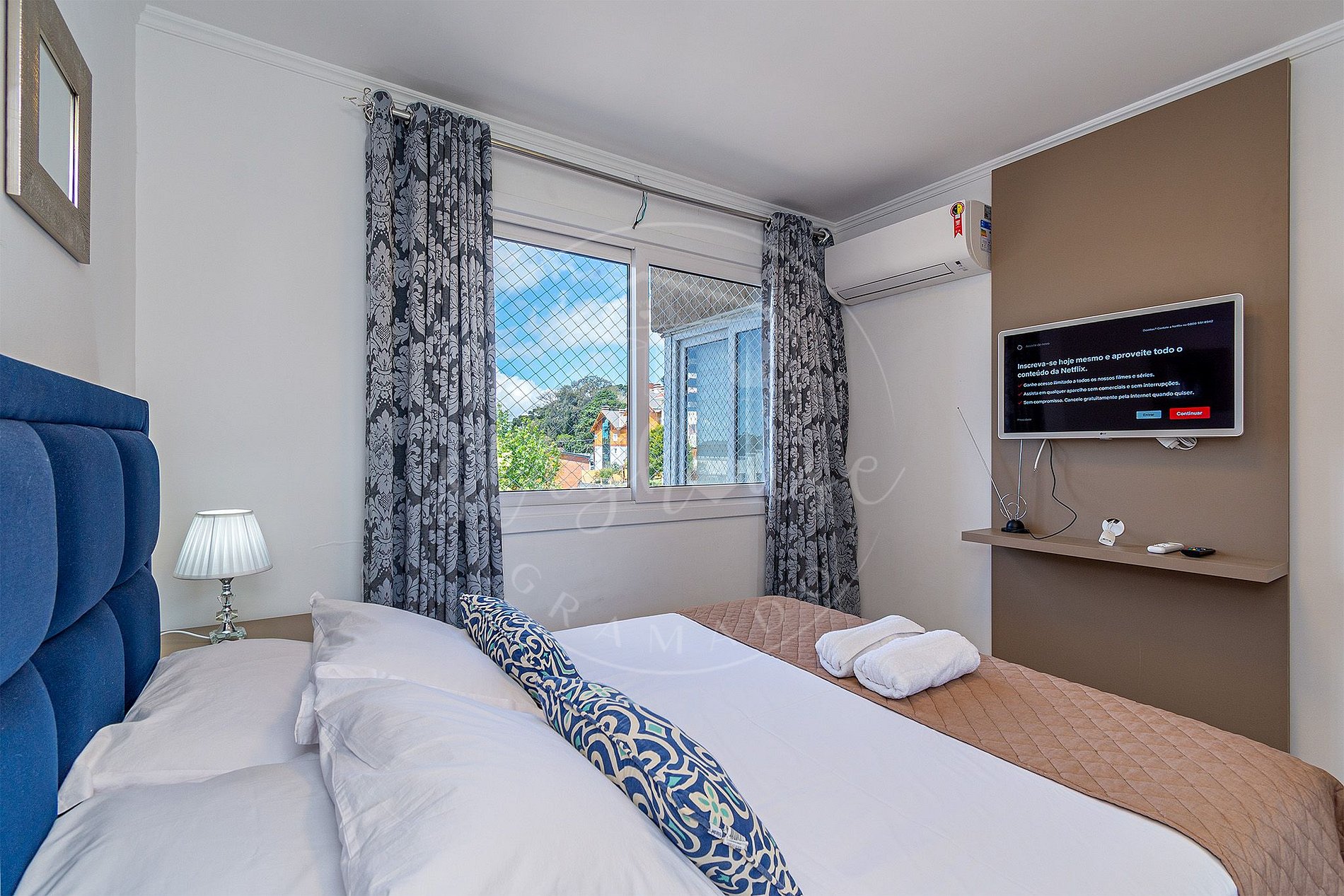 TV Smart, com netflix e canais abertos. Na sala e dormitório possuem ar split quente/frio.