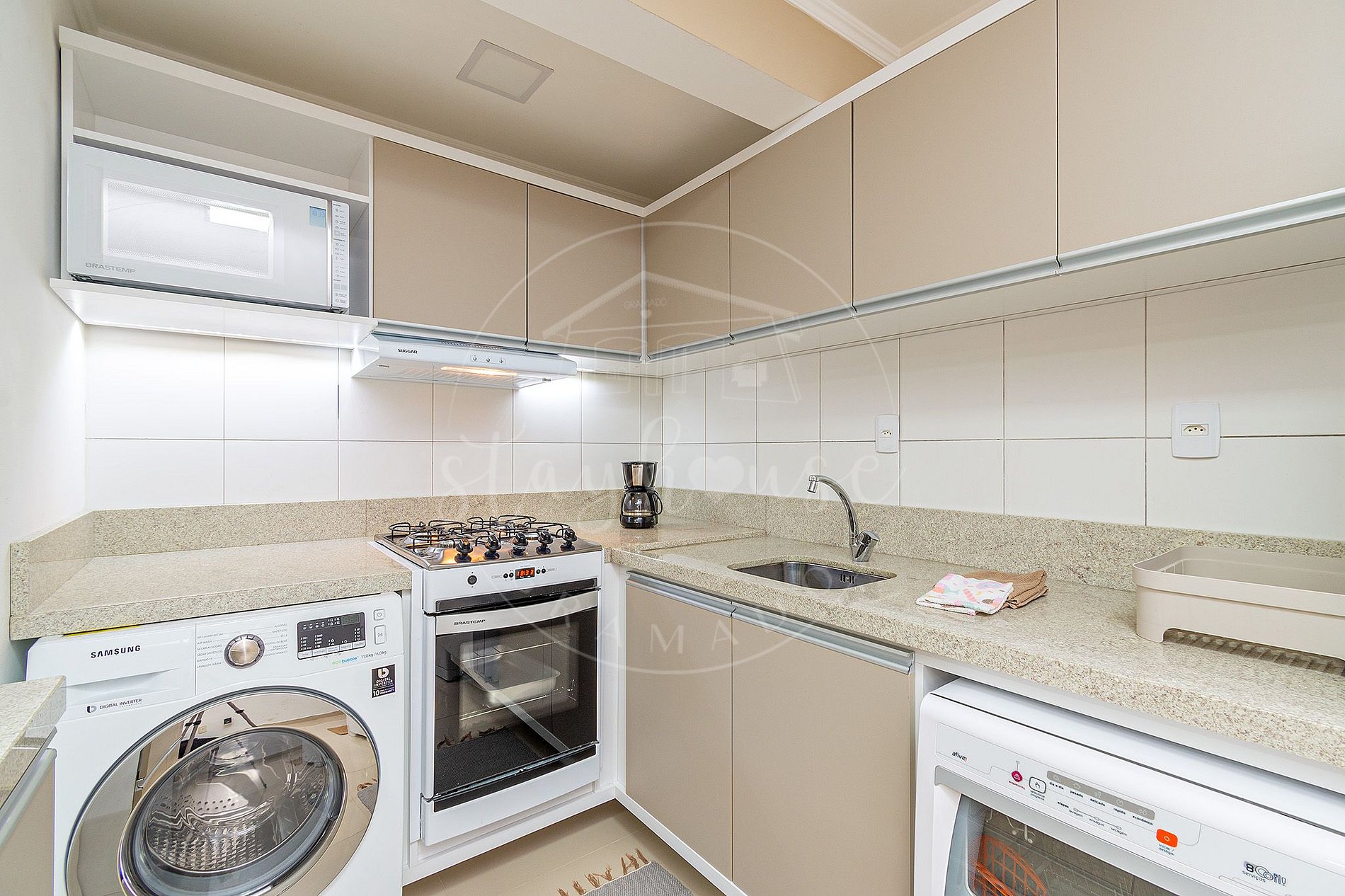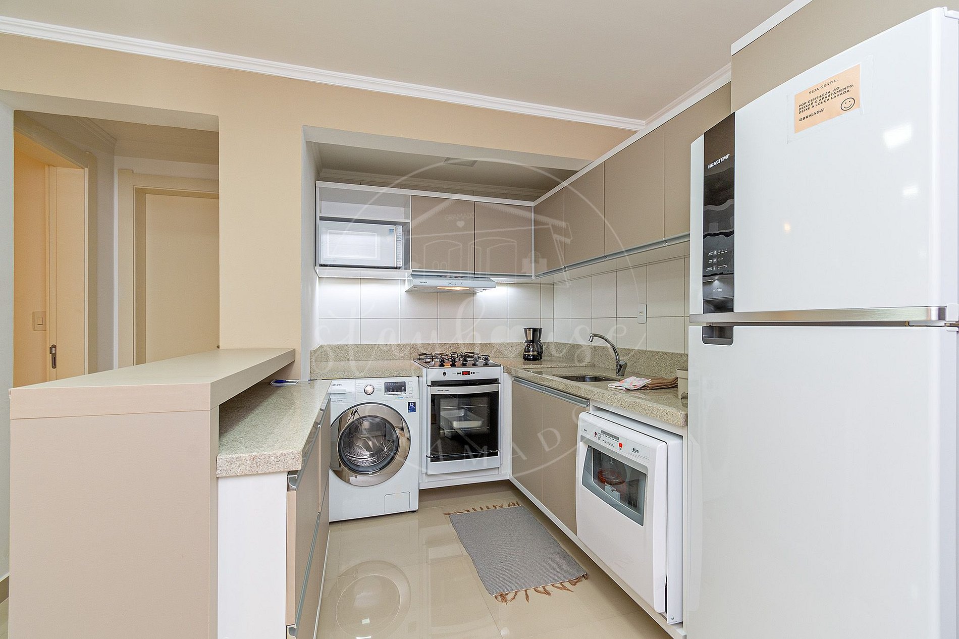 A cozinha equipada com máquina de lavar louças, cafeteira, sanduicheira e todos utensílios necessários para quem gosta de preparar suas próprias refeições.