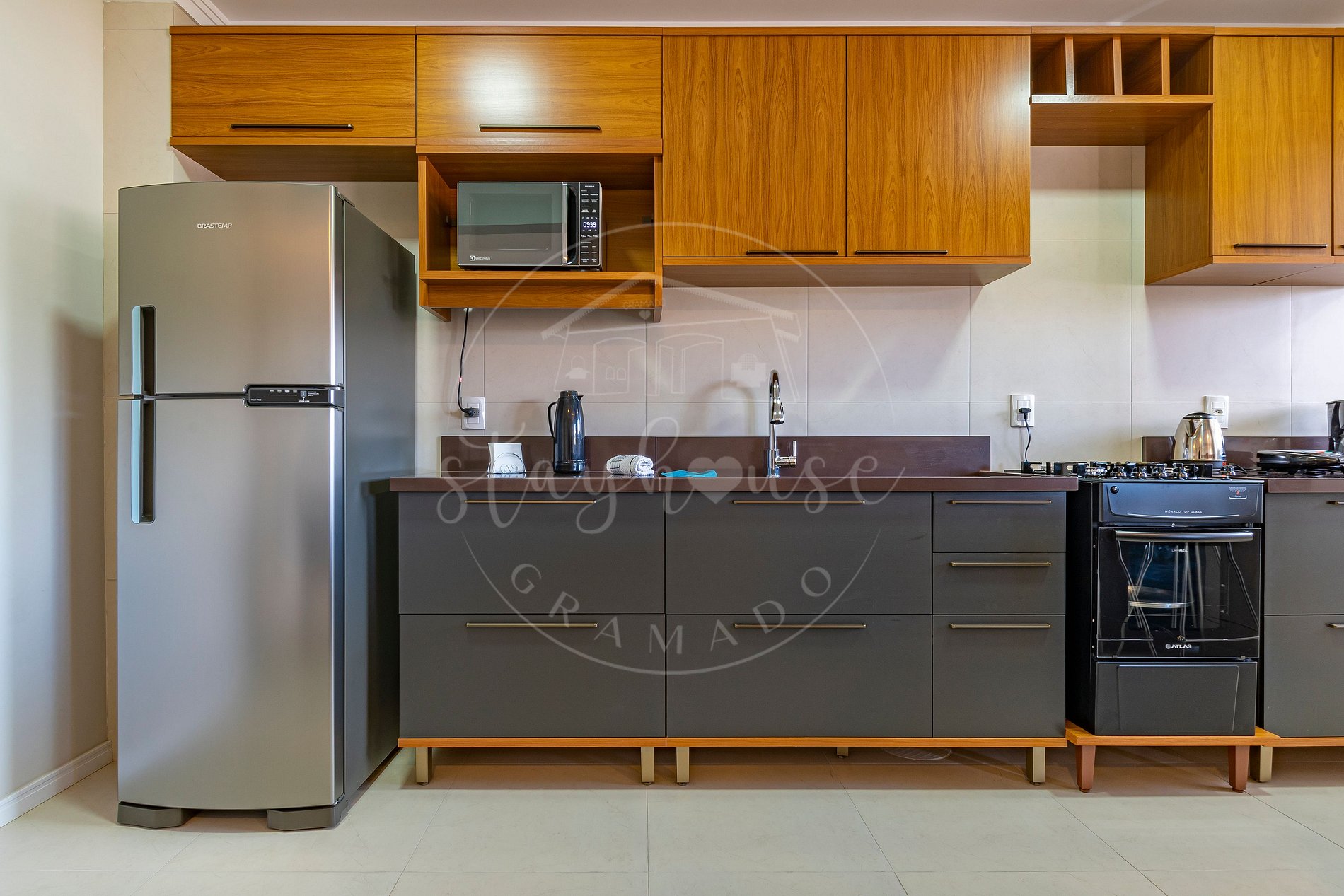 Na cozinha super equipada, contamos com todos os eletrodomésticos necessários para sua hospedagem, cafeteira, sanduicheira, fogão com forno, e churrasqueira na sacada. Andando ainda pela cozinha vocês encontra uma pequena área de serviço com máquina lava, tanque.