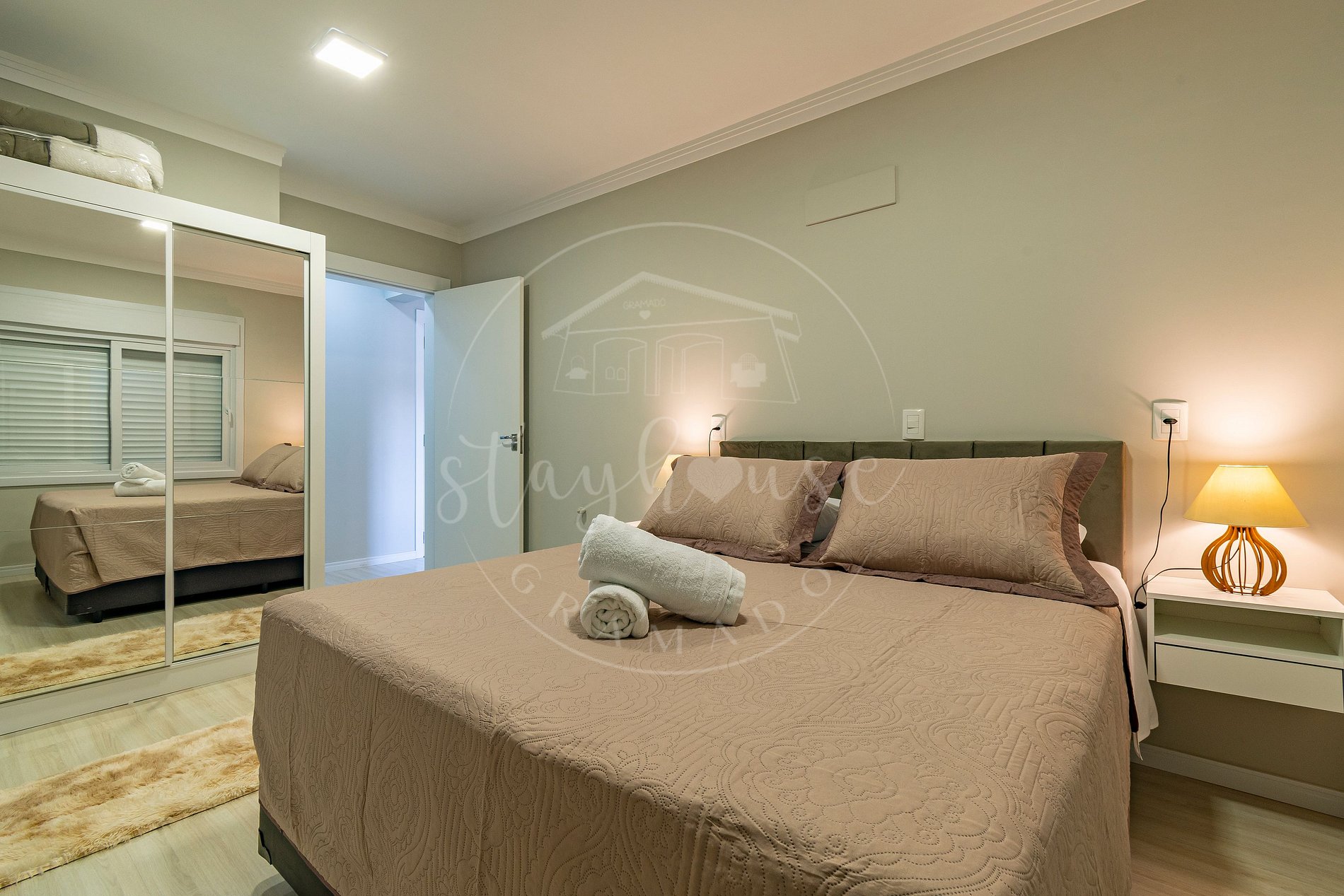 Imóvel de 1 dormitório sendo ele suíte, com sofá cama na sala para uma criança, WI FI, split quente e frio na sala, 1 vaga de garagem, super completo e próximo de todas as atrações. Em torno de 5 minutos de carro do centro de Canela.