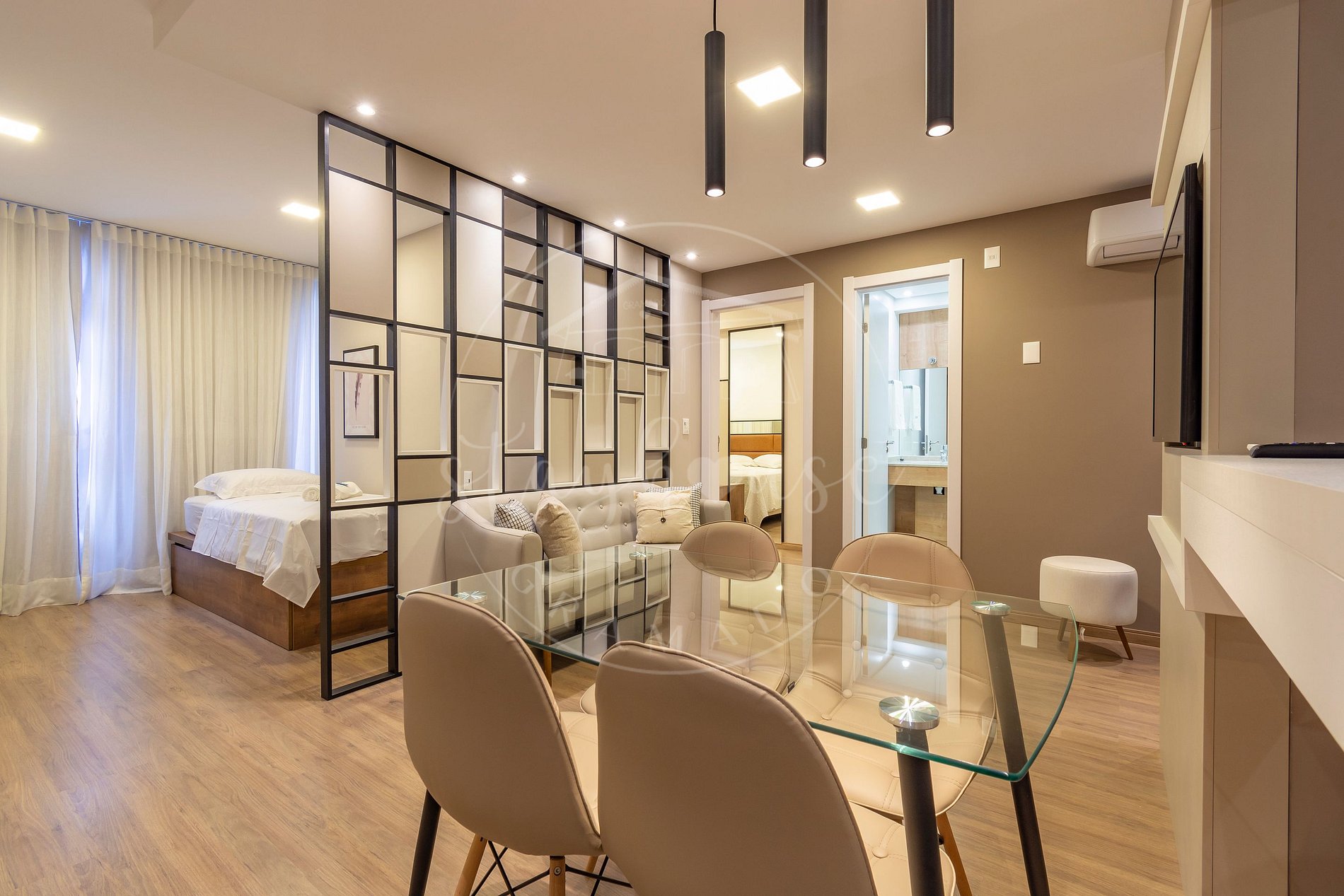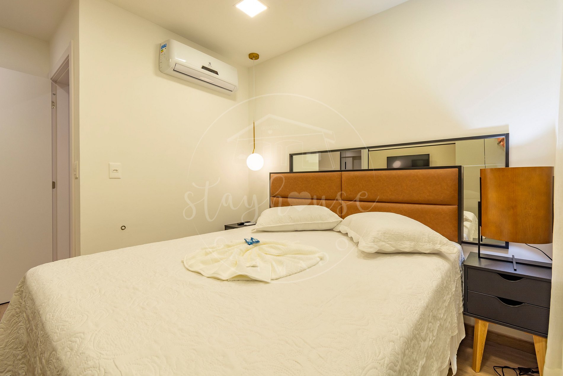 1 dormitório com cama queen, TV Smart e ar split quente e frio