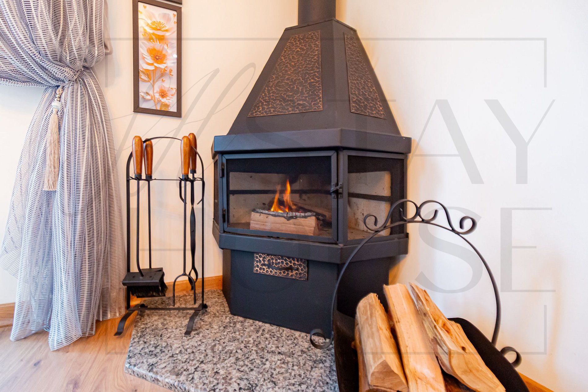 Sala com lareira e sofá-cama, perfeita para relaxar nos dias frios