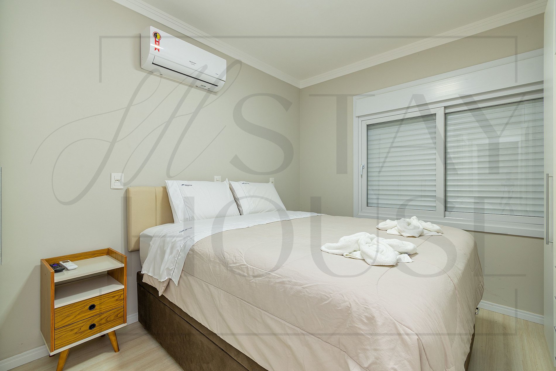 O imóvel conta uma suíte com cama queen. Acomodando um casal com ar condicionado quente frio, com banheiro equipado com secador de cabelo.