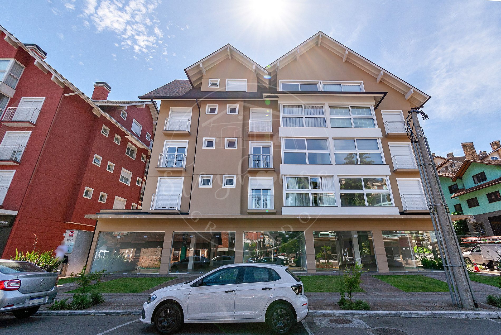 A localização é ótima, próximo de casa de shows, pizzarias, casas de chocolates típicos da região, cafés coloniais, galeterias, churrascarias e outros restaurantes. Na região, também encontra-se supermercados, farmácias, mercearias com produtos locais, etc