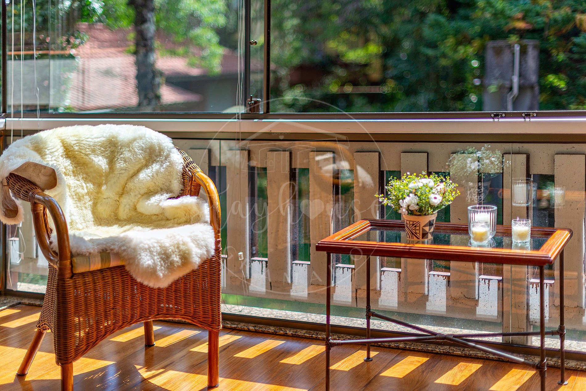 Sacada fechada com vidro.