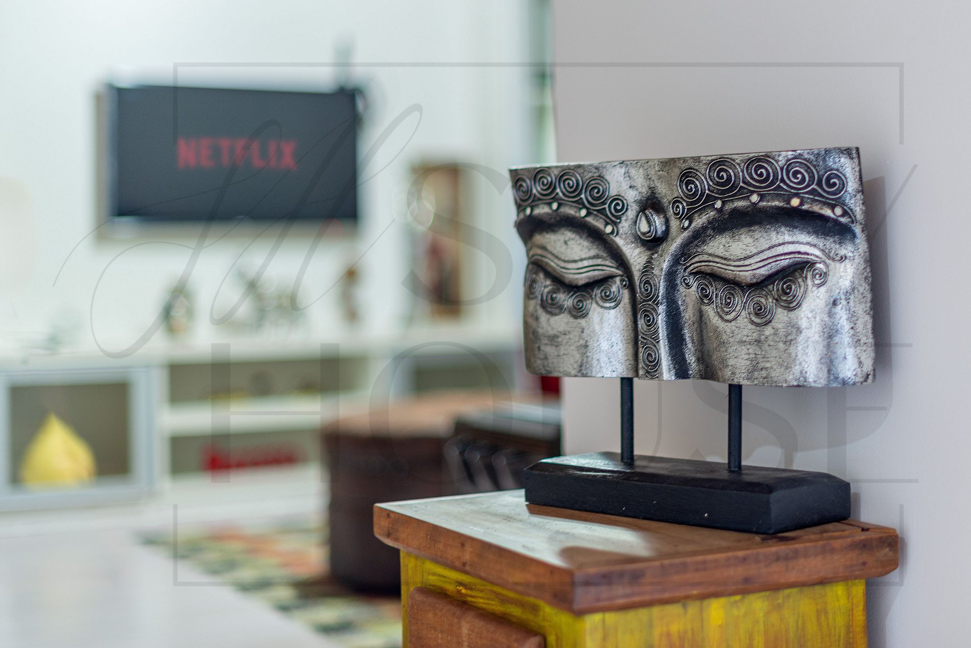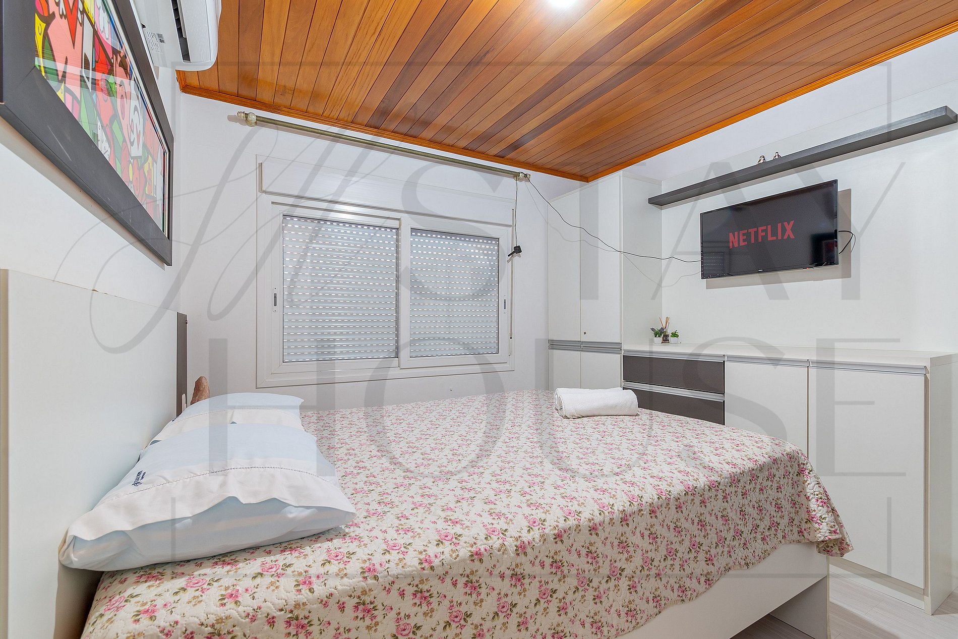 Na TV da sala para as crianças TV Smart, além de canais abertos e também a possibilidade de você se logar no seu próprio NETFLIX.