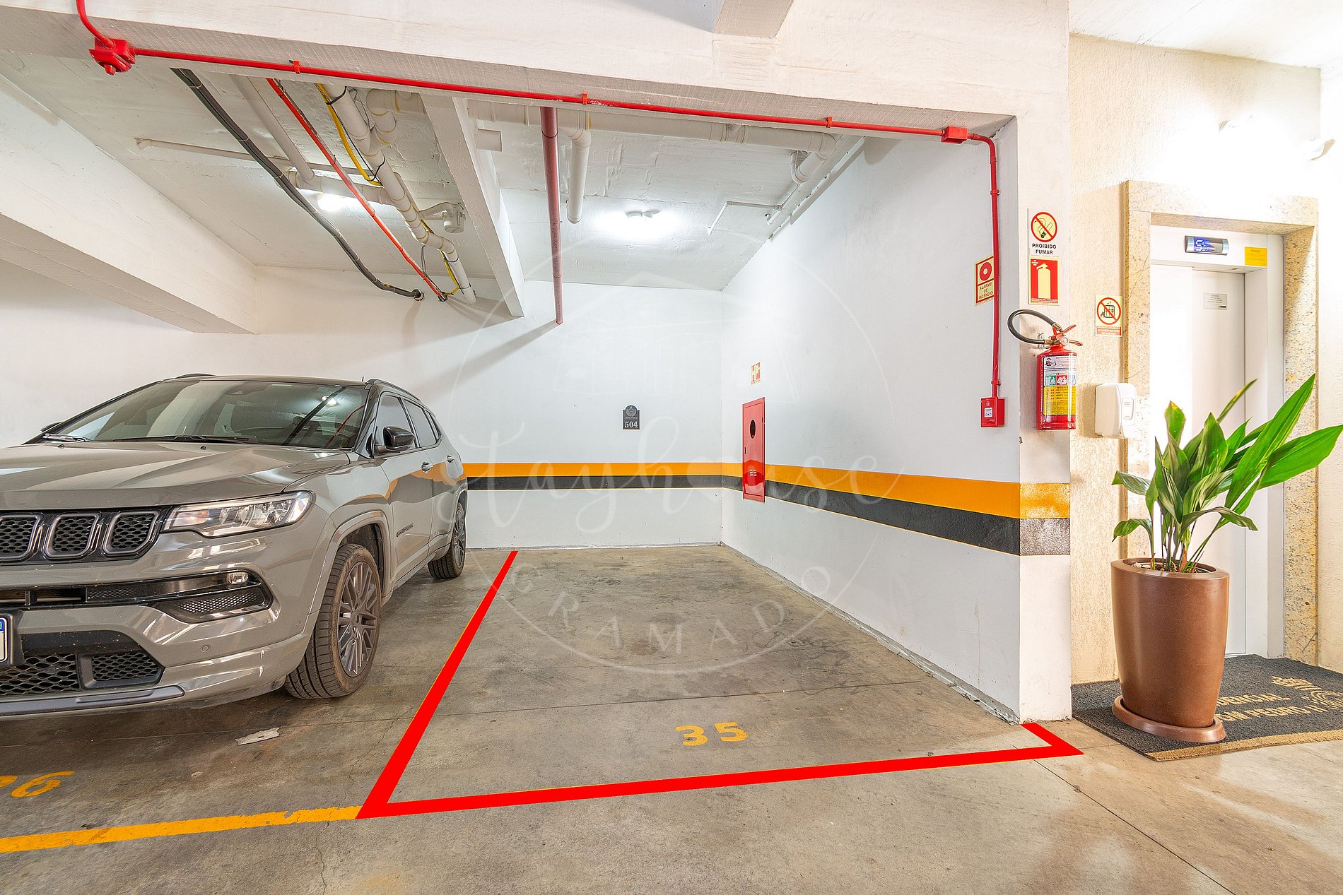 O imóvel tem uma vaga de garagem coberta e exclusiva aos nossos hóspedes.