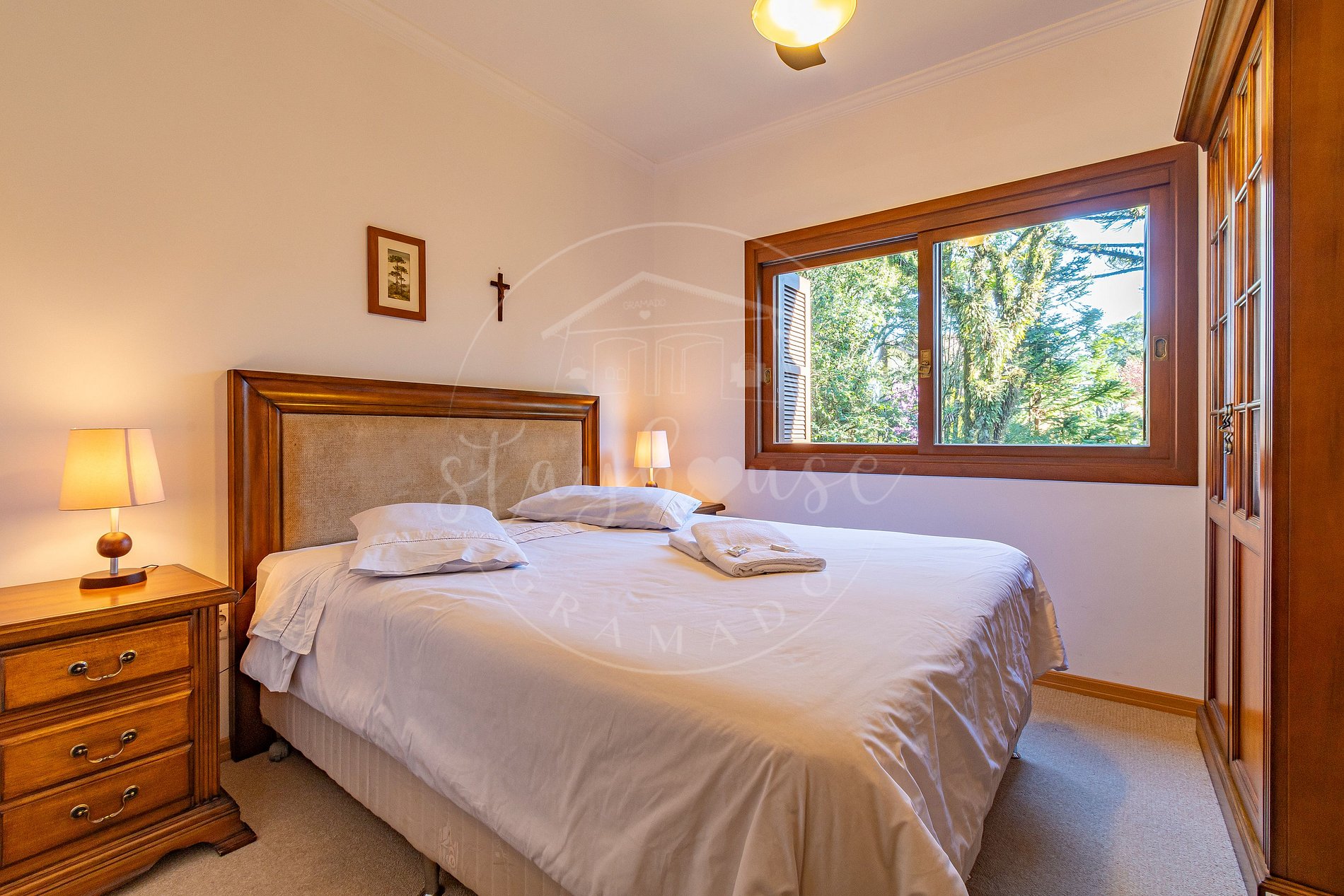Fornecemos roupas de cama e banho, um muda de lençol por cama, uma toalha de banho por pessoa, e um piso e rosto por banheiro. Caso queria ítem extra, consulte a taxa.