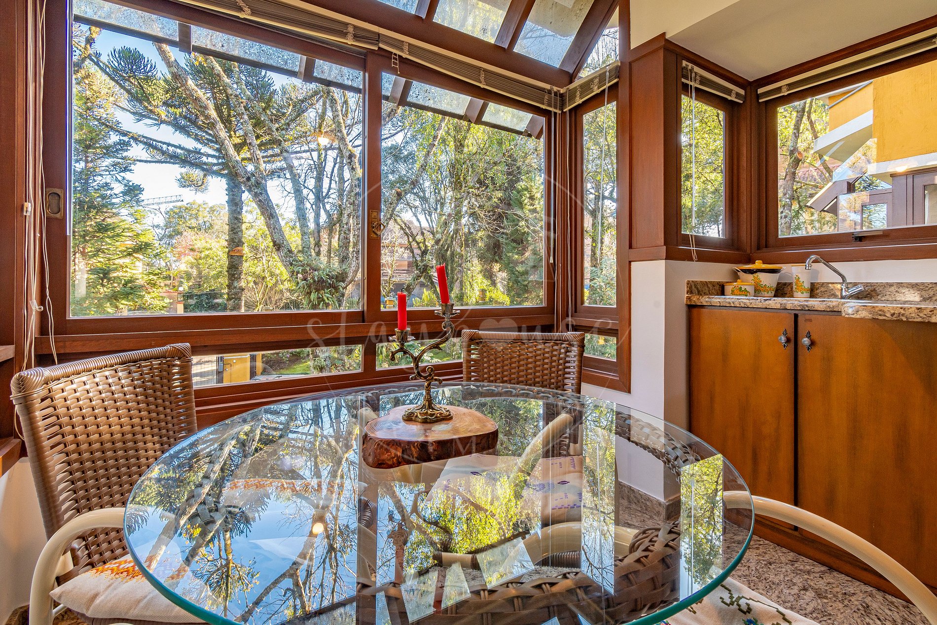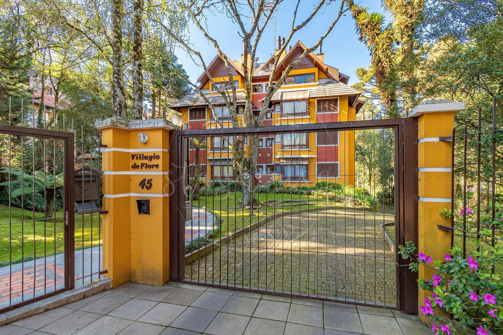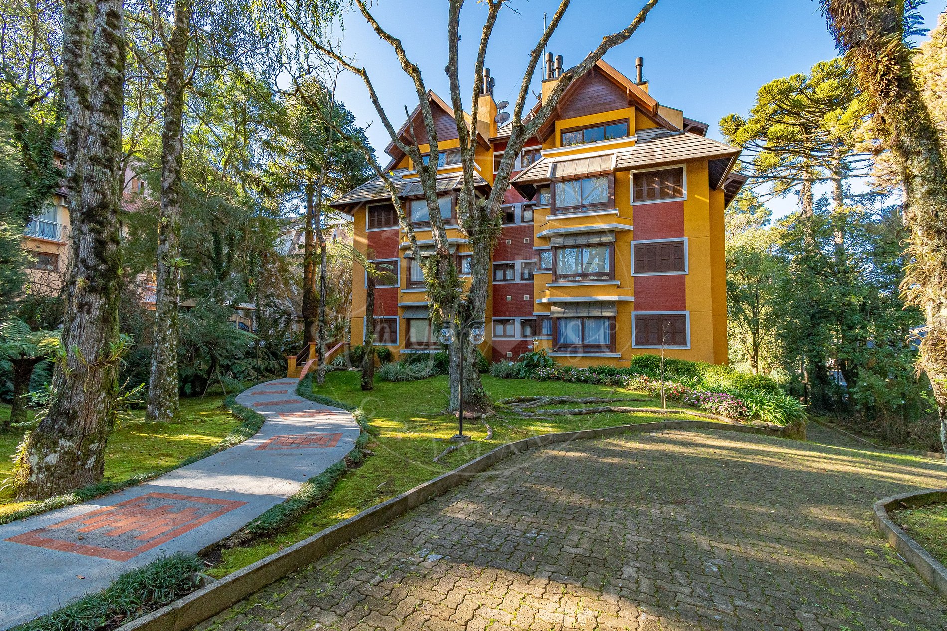O condomínio seguro com garagem coberta e fica próximo ao centro de Gramado, sendo 1000m da Rua Coberta.