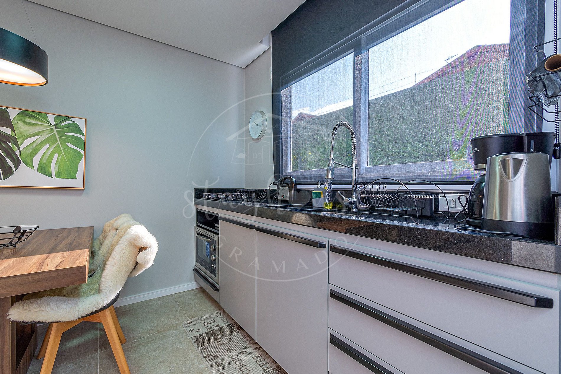 - Primeiro pavimento térreo a sala integrada com TV Smart e Wifi, cozinha completa, e área de serviço com lava roupas. E um lavabo encantador, nos fundos um pátio privado.