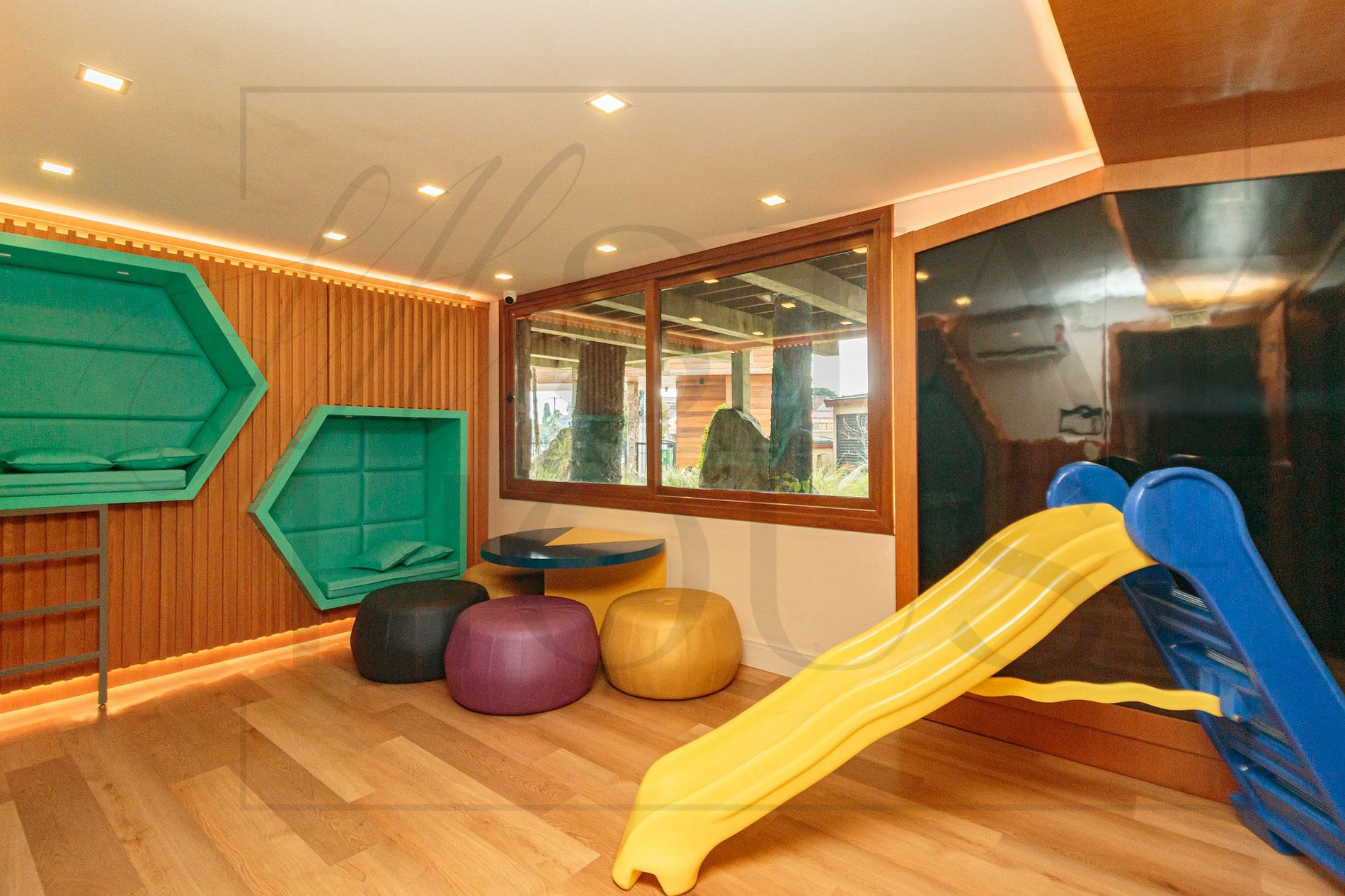 Com TV, mesa, quadro para desenhar e escorregador, garantindo diversão para as crianças.