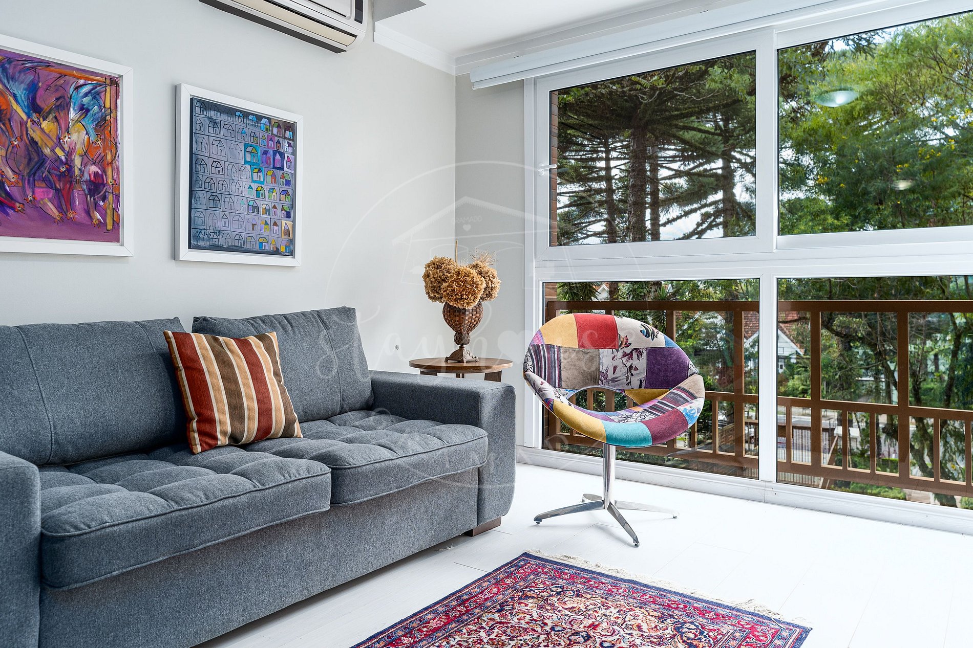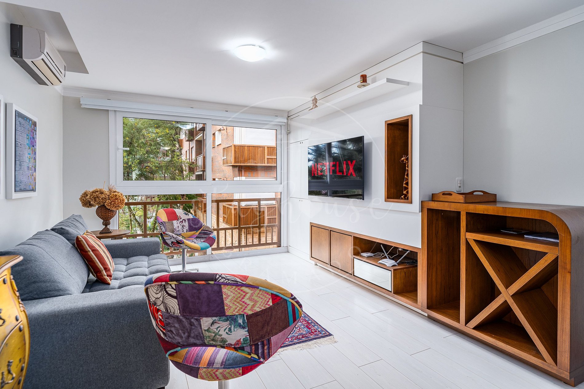 Os ambientes como sala e quartos contam com ar split quente e frio.