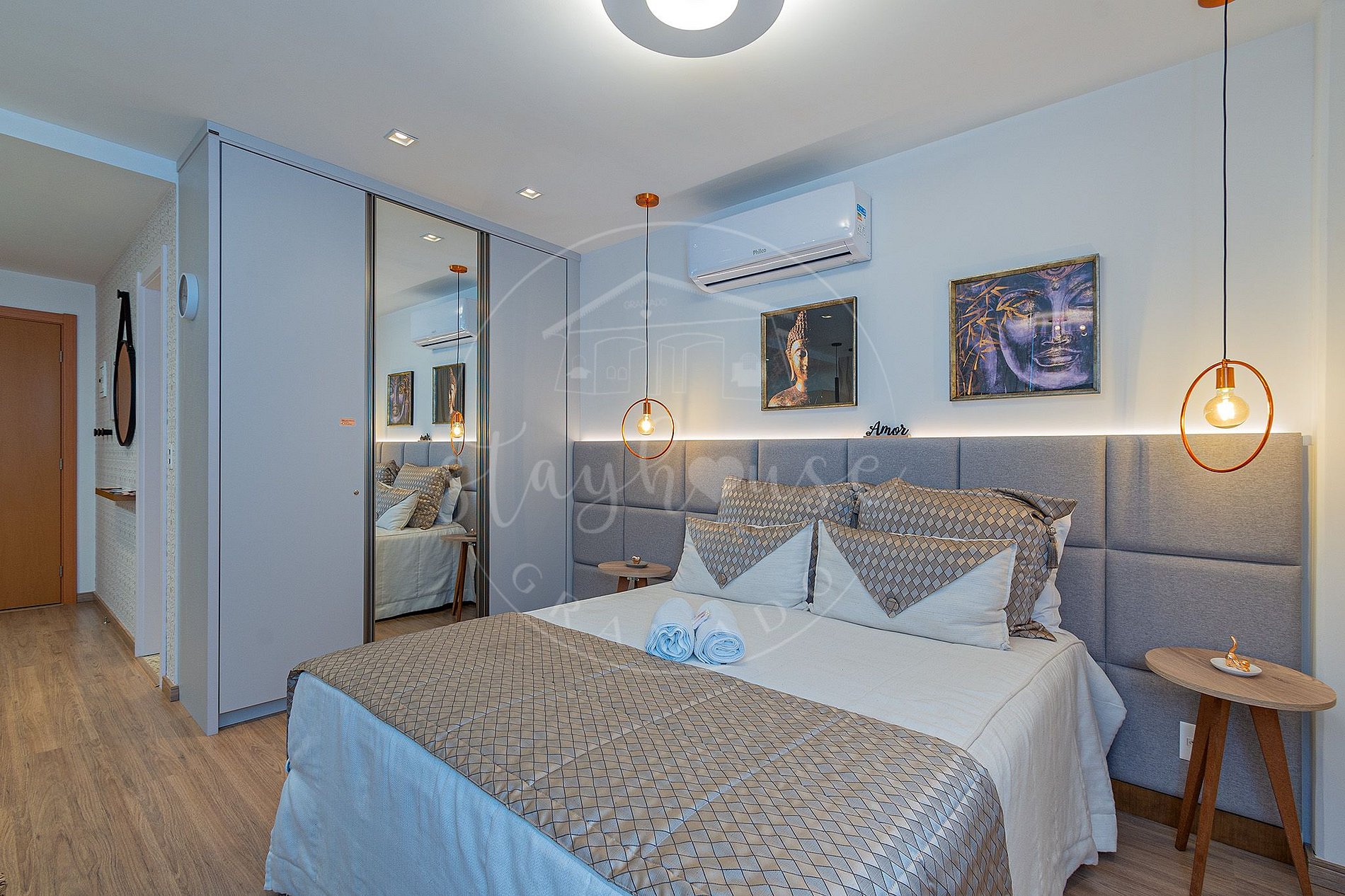 O Studio tem conceito aberto, com cozinha super equipada. Sala integrada com sofá cama para 1 pessoa. Black out na sala com TV Smart giratória de 50 polegadas, podendo direcionar pro sofá cama ou pra cama queen.