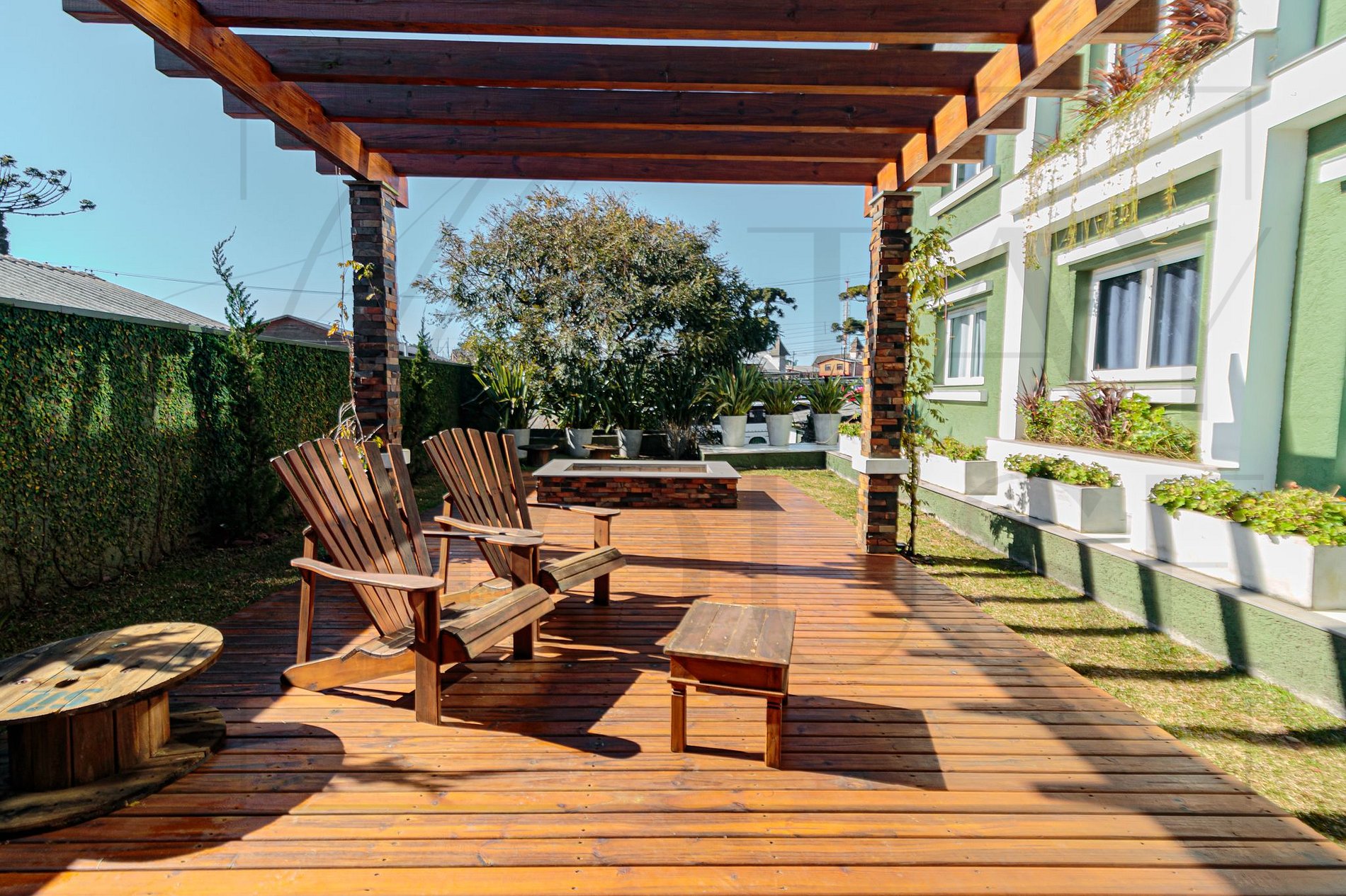 Infraestrutura diferenciada que conta com um moderno deck com pergolado e fogo de chão.