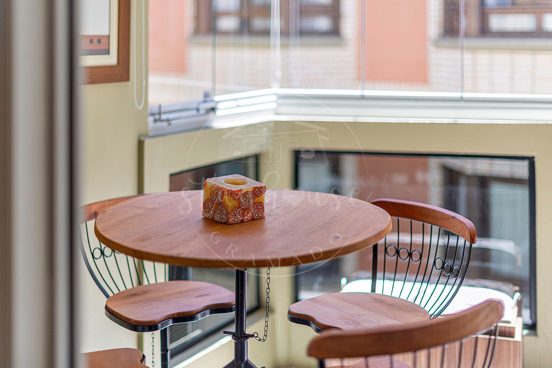 sacada fechada com vidro com churrasqueira.
