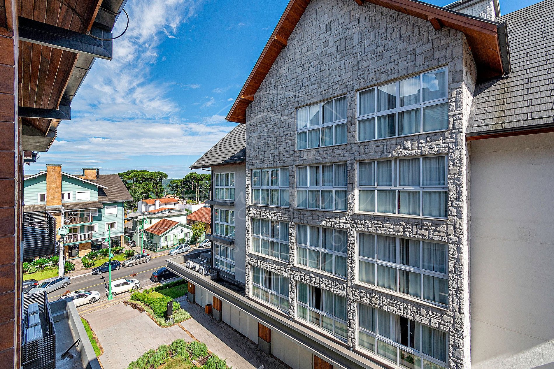 O residencial do Studio fica no Vita Boulevard em Gramado, o estacionamento é no subsolo. O acesso ao imóvel é pela rua ou pela garagem da garagem ao andar de entrada do imóvel tem elevador ou escada rolante.